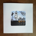 Linogravure superposée à une aquarelle originale créée par mes soins.