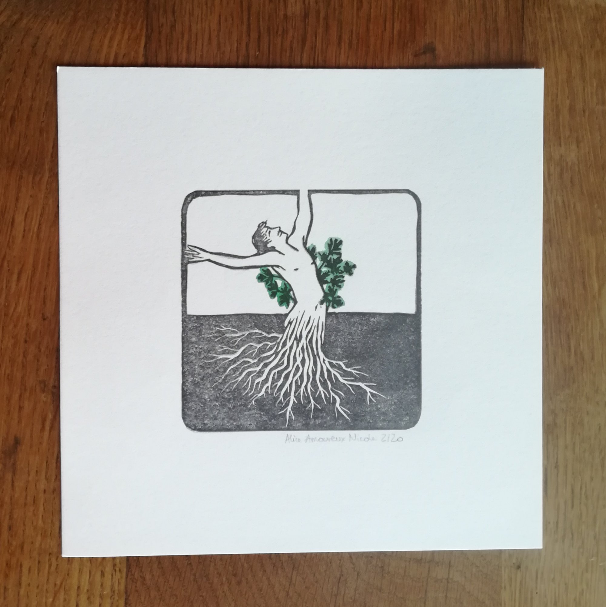Une linogravure qui a ses charmantes irrégularitées.